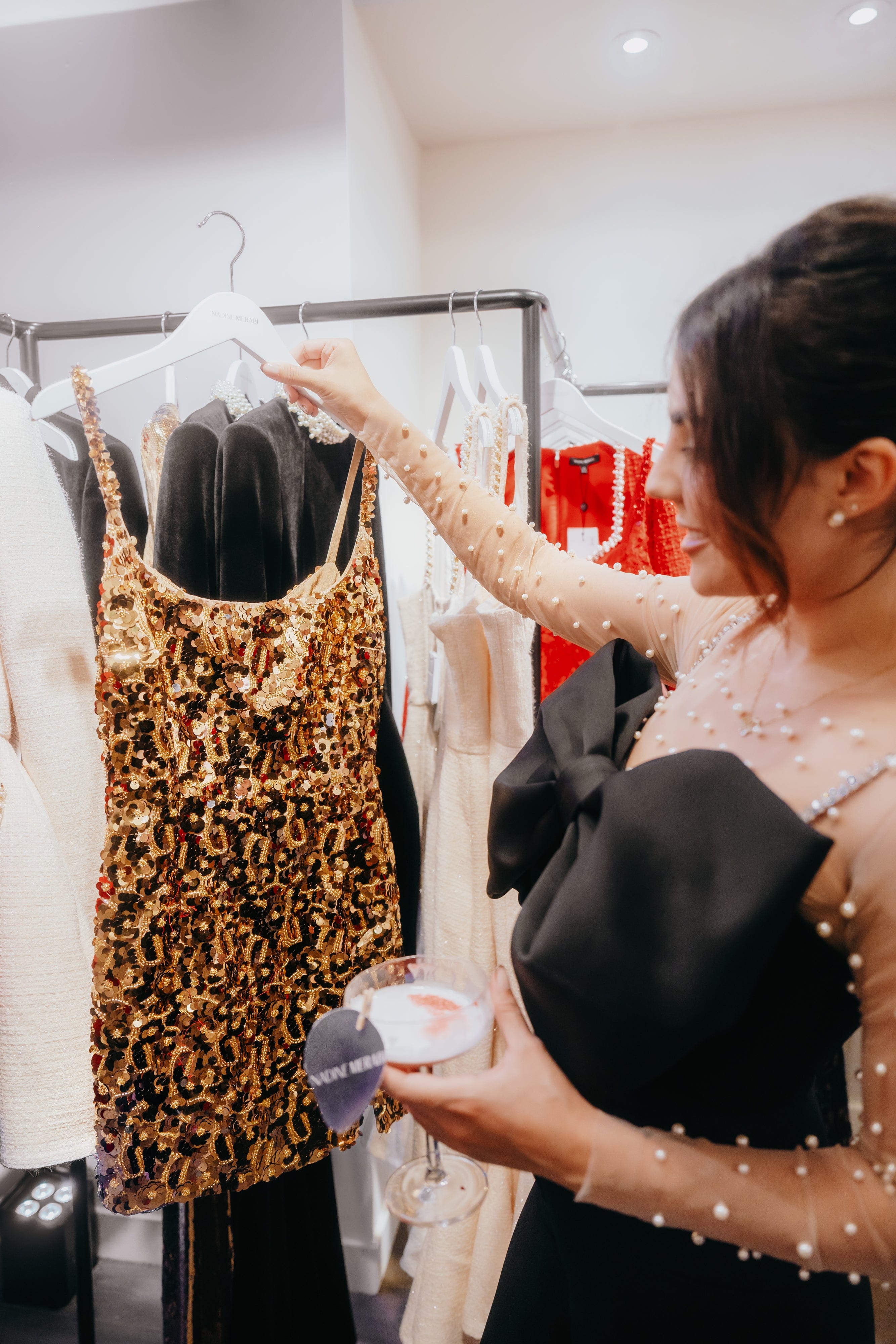 The preview of the new Autumn/Winter collection took centre stage, with stunning displays around the store that showcased the season’s must-have pieces. From rich velvet textures to bold, structured silhouettes and intricate detailing, the collection was designed to capture the essence of feeling your best for party season with a twist of modern luxury. Guests had the chance to get up close and personal with the pieces, experiencing the luxurious fabrics and exquisite craftsmanship that define our MERABI designs. The collection's debut was met with awe and admiration, as our signature glamour and MERABI magic collaborated together, building excitement for the party season.
