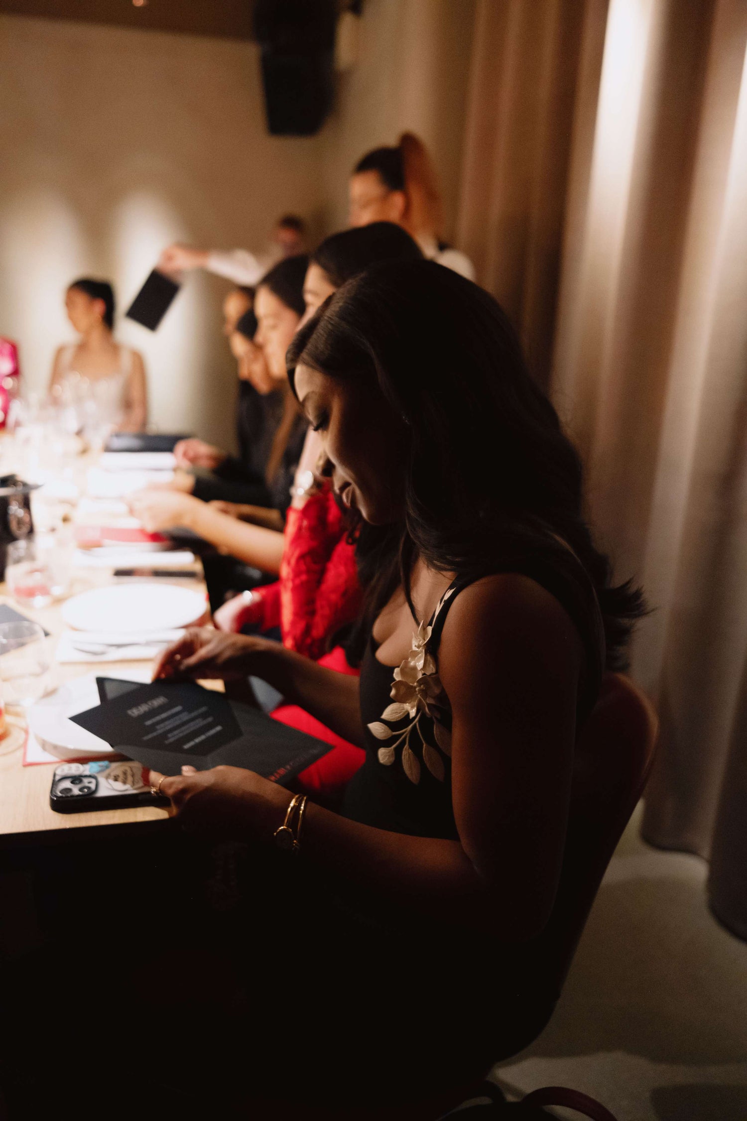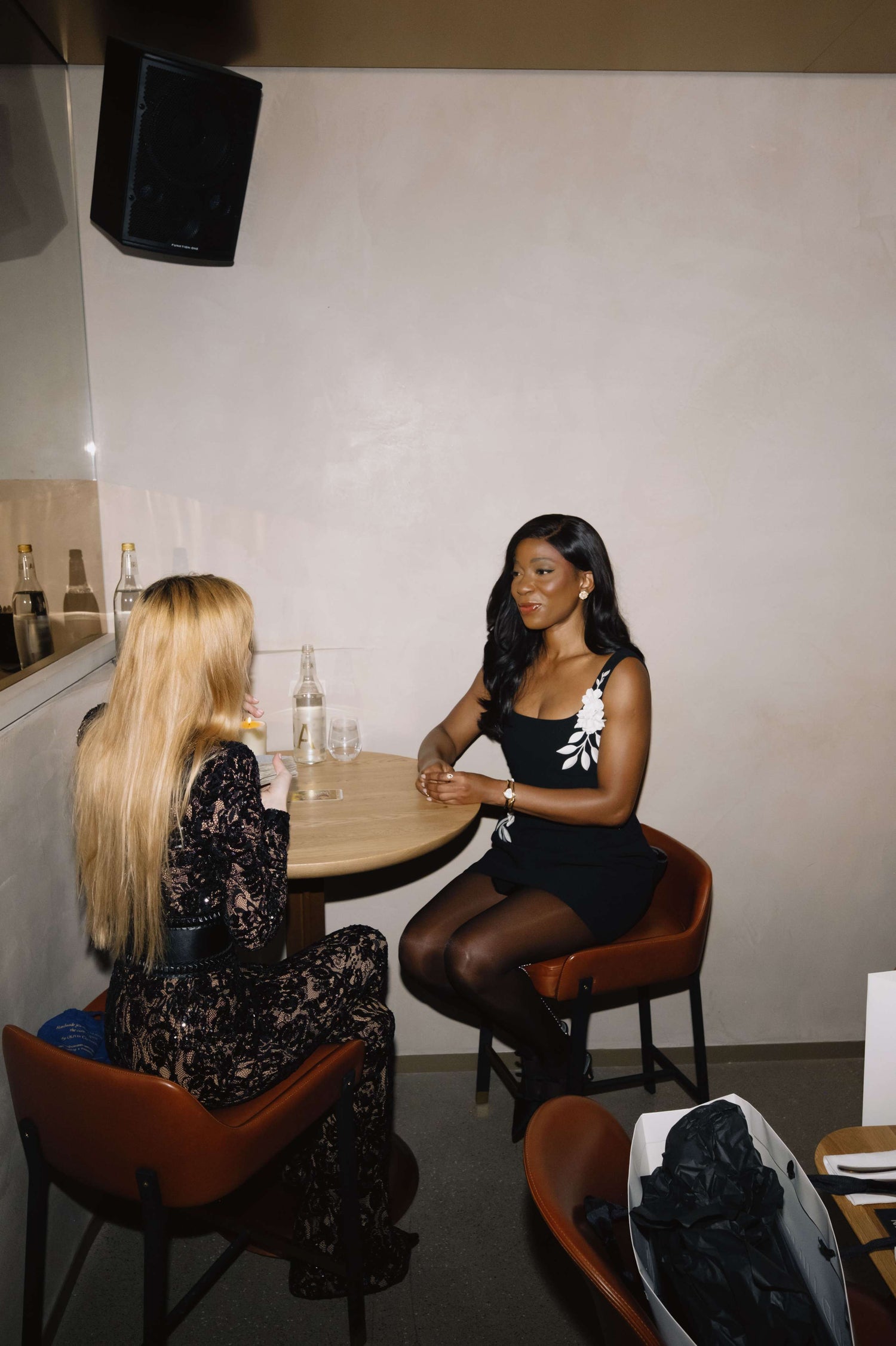 Once ready, guests arrived at MR PORTER Restaurant, Bar & Lounge for the evening event, where they were greeted with a cocktail reception and tarot readings. The tarot reader, dressed in our iconic and forever loved BELLA Black Jumpsuit, guided guests through positive affirmations, adding an intimate and thoughtful touch to the night.