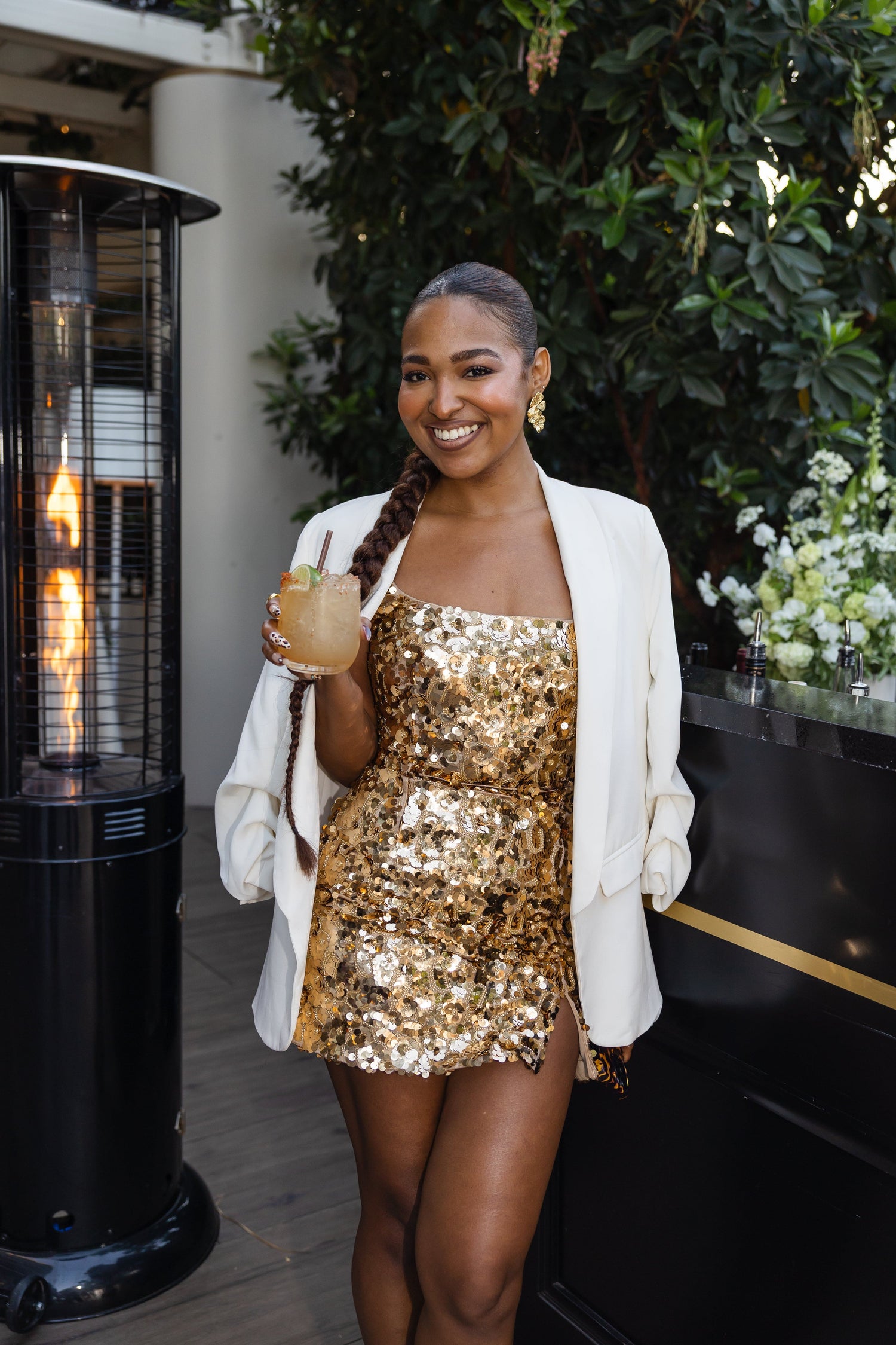 Strategist, connector and brand builder, Raya O’Neal told us about her favourite LA spots: “1000% Bravo Toast for matcha and a chicken Caesar wrap. Then shopping in Century City. For dinner, we’re going Alba, West Hollywood, for New York City nightlife vibes.” She wore the NINA Gold Dress: “It makes me feel confident, sexy, and strong. When I walk in, heads are turning. I’m obsessed with this dress; it’s extremely flattering and comfortable.”