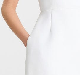 The BLAIR White Dress is crafted from our signature luxe crepe fabrication and designed with a sweetheart neckline embellished with jewel droplet detailing. A structured corset bodice with boning at the front, back and sides sculpts the silhouette, while the tulip skirt adds a timeless finish. Complete with concealed pockets and a discreet zip closure at the back for a seamless fit.